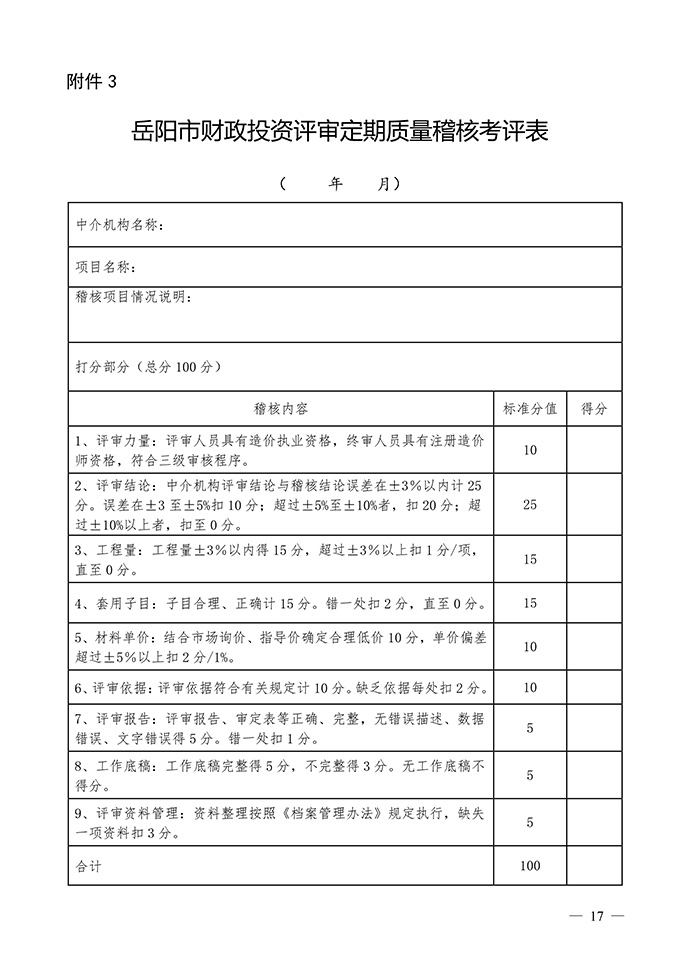 岳陽市財政局關于印發《財政投資評審項目委托中介機構評審管理辦法(試行)》的通知